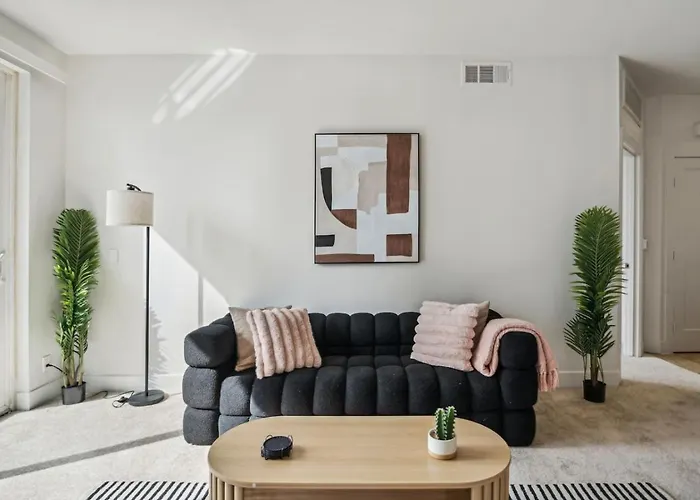 Een keuken is voorzien van een oven en een vaatwasser. Het treinstation 7th St/Metro Center bevindt zich op 23 km van dit appartement.